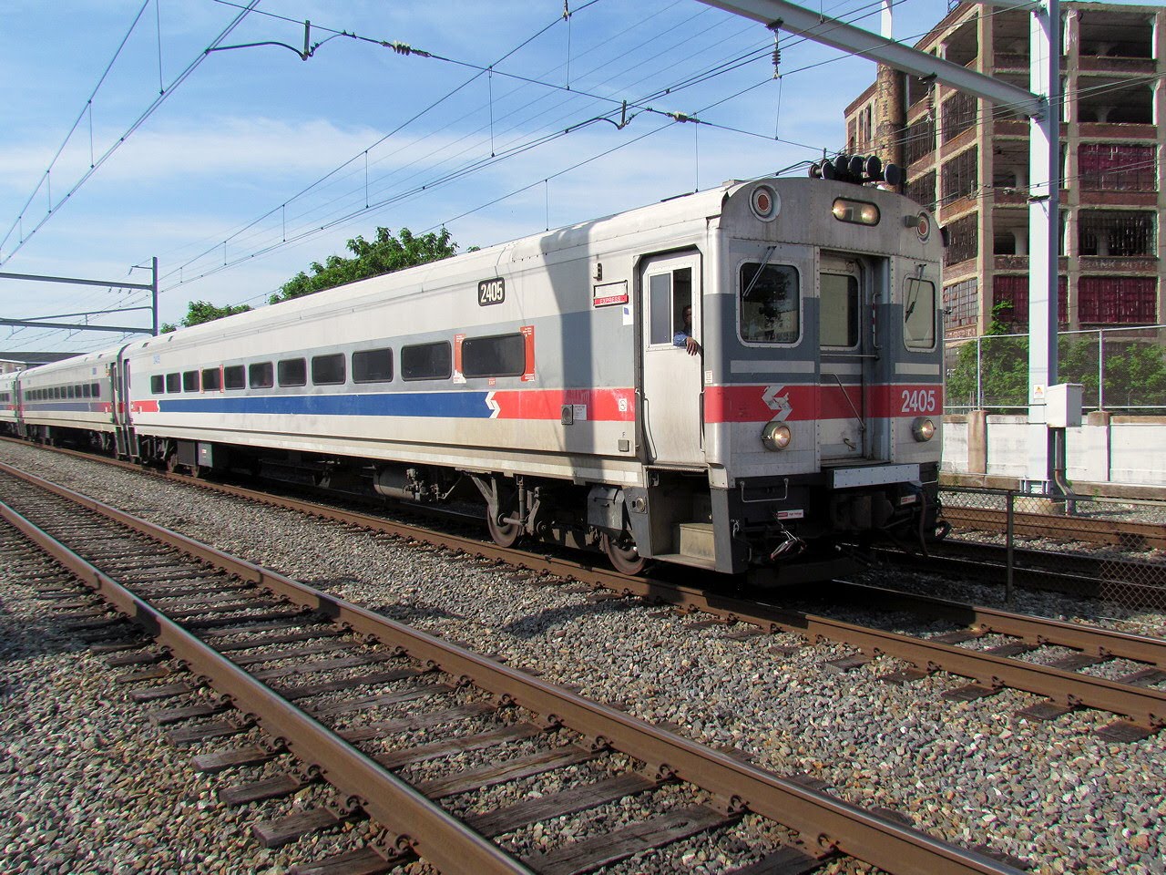 This is probably as good a time as any to discuss the old Reading North Broad station, which is the limestone building visible to the left behind #2302. Back before the neighborhood became a war zone, it was actually quite prosperous with both the PRR and Reading building their "125th St-Harlem" stations in the area which also hosted the Philadelphia Athletics and Phillies baseball teams. The collapse of the local economy caused ridership to crater and now both North Broad and North Philadelphia see only a handful of riders as most residents have shifted to the more frequent and more affordable Broad Street Subway. Both old station buildings have been re-purposed and both have had tracks removed with North Broad now only consisting of a pair of bare bones side platforms.