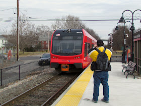 Because the MWT tries to avoid leaving people behind the main group returned to the Transfer Center to pick up those who were too slow to make the first train. We were eventually rewarded with Red Wrapped LRV #3515.